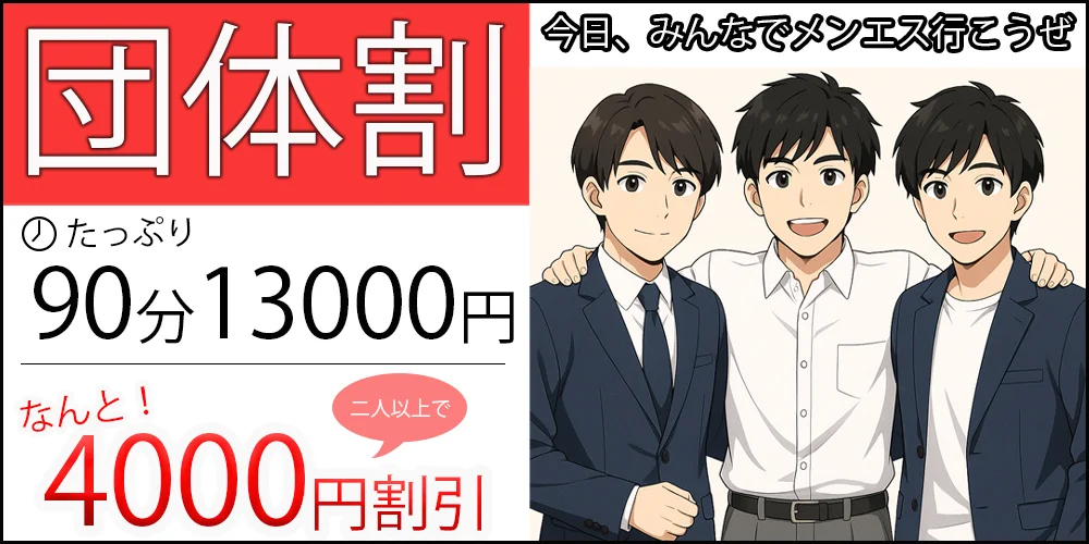 2025.11.29ã20:20 1æ¥å ç1åã90å10,000åã ã芧ããã ããŸããŠããããšãããããŸãã ä»åºã«ã¯ããã§ããªãç¹å¥äŸ¡æ Œã§èº«äœãšå¿ããªãã¬ãã·ã¥âª â ââ ã¯ãŒãã³æ å ±â ââ 1æ¥å ç1åã90å10,000åã ããã£ããããããâã90åãã éåžž 90å 17,000å â 90å 10,000å ( 41ïŒ OFF ) ããå©çšæ¡ä»¶ã ããšã¹ãé10000åã¯ãŒãã³èŠãããšãäŒããã ãã â»æ³šæäºé â» â æ¯æ¥ã䜿ãããã ããŸãããéå®ïŒæ ã®ã¿ãšãªããŸãã®ã§ãªãã¹ããæ©ãã«ãäºçŽãã ãã(ãæ¡å ãå€ã§ã䜿ããŸã) â¡äžåºŠãäŒããããã»ã©ãã¹ãã«ã¯äœ¿ããŸãã 玳士ãªçæ§ããã®ãåãåãããåŸ ã¡ããŠãããŸã⪠â åºèæ å ±â ãåºåãç¥æžã¡ã³ãºãšã¹ããã·ã§ã³ã©ã¹ã ãå¶æ¥æéã10:00ïœ29:00 ããšãªã¢ãç¥æžã»äžå®®ã»å°ŒåŽ ãæå¯ãé§ ãJRäžãå®®é§ ãç¥æžäžå®®é§ é§ ãTELã0120-003-709